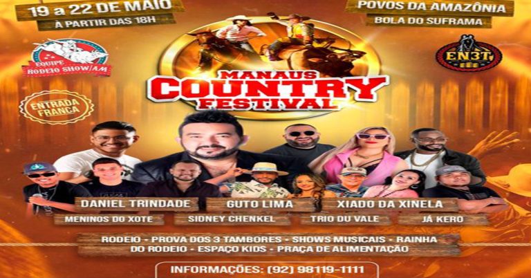 De acordo com o coordenador do Manaus Country Festival, Arnaldo Neto, o evento terá entrada gratuita e é para toda família. Lembrando que menores de 14 anos devem estar acompanhados dos pais ou responsáveis