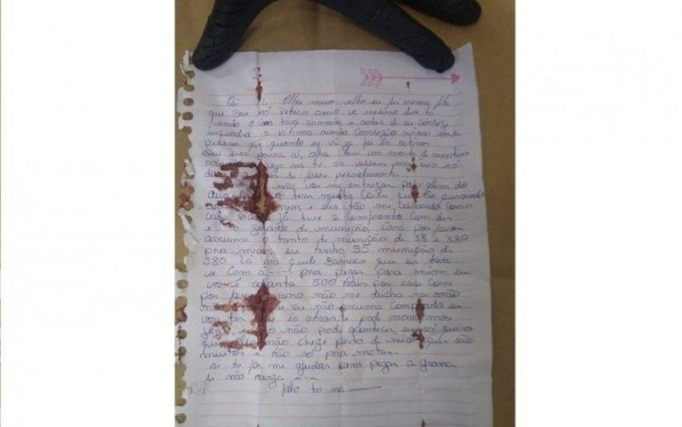 Carta ensanguentada encontrada com Lázaro indica detalhes de chacina