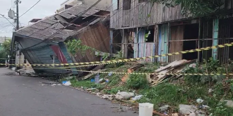 Moradores da rua Taumaturgo Vaz, no bairro Colônia Oliveira Machado, na zona Sul de Manaus, viveram momentos de pânico na noite de terça-feira (18/03), após o desabamento de uma casa. De acordo com relatos dos moradores, o imóvel estava abandonado e já apresentava sinais de deterioração, com risco iminente de desabamento. As fortes chuvas que afetaram a cidade ao longo da semana contribuíram para que a estrutura da casa cedesse, deixando o edifício pendurado apenas na fiação elétrica.