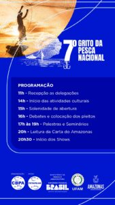 Na programação do Grito da Pesca, estão planejadas diversas palestras com especialistas da área, fórum de debates, polo de saúde com atendimentos básicos, atividades recreativas para as famílias, apresentações culturais e shows dos artistas Zezo, Rabo de Vaca e The Rossi.