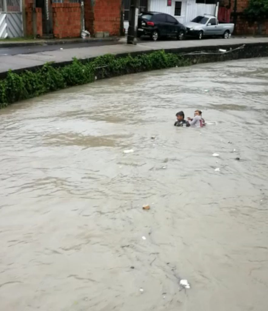 Com o aumento do volume de água e a correnteza que se forma , alguns meninos se jogam dentro do igarapé, ignorando o perigo de sofrer algum acidente causado pelo lixo e a contaminação pela sujeira destas águas.