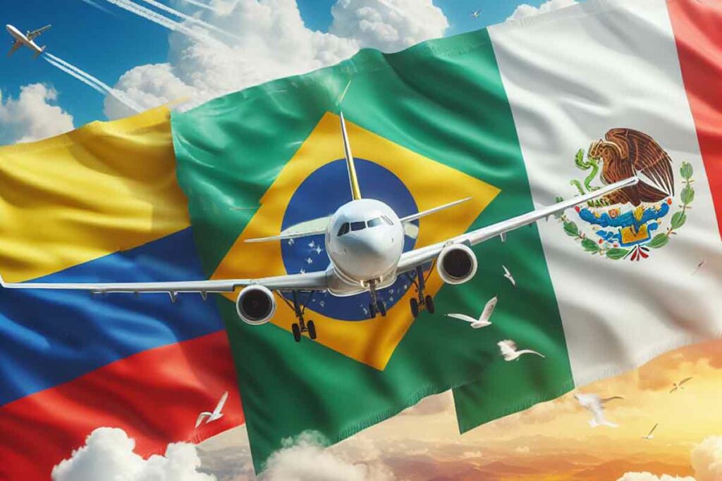 A Colômbia registrou um crescimento de 37% no tráfego internacional, transportando 1,7 milhão de passageiros, seguido do Brasil com um aumento de 29%, ultrapassando pela primeira vez a marca de 2 milhões de passageiros transportados em fevereiro, totalizando 2,07 milhões. Em contrapartida, o México se destacou com um aumento de 13%, alcançando 4,9 milhões de passageiros internacionais.