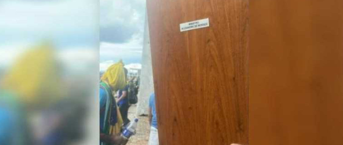 Manifestantes que invadiram o Superior Tribunal Federal (STF), neste domingo (8), arrancaram e roubaram a porta do armário onde fica a toga do ministro Alexandre de Moraes. Em um vídeo que circula nas redes sociais, um homem segura a porta e desafia: “Vem buscar sua porta, Alexandre”.