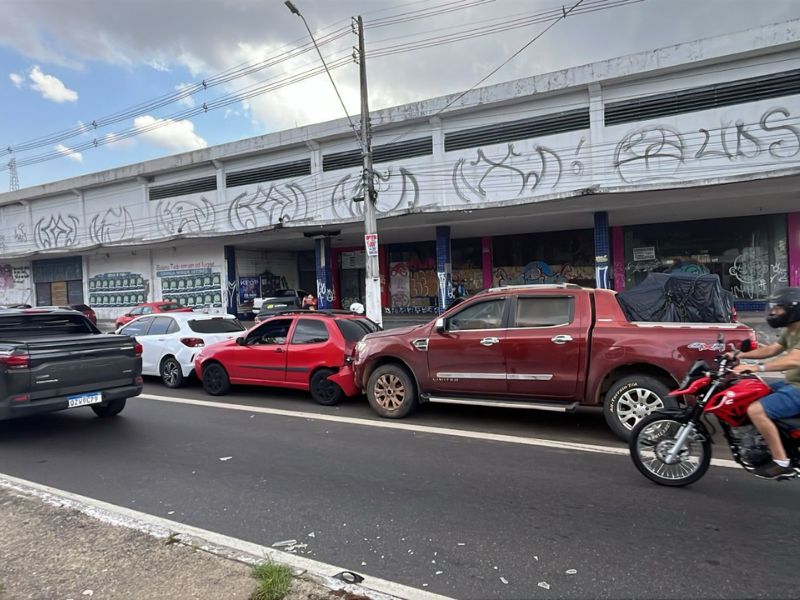 Segundo informações preliminares, o condutor do veículo perdeu o controle da direção e colidiu contra uma caminhonete Ford Ranger vermelha. O impacto desencadeou uma sequência de batidas envolvendo também um Fiat Siena e um Chevrolet Onix.