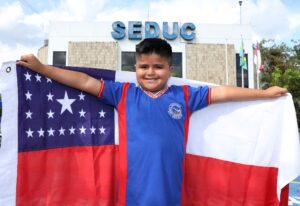 O estudante Luan Gama, de 10 anos, da Escola Estadual (EE) Libertador Simon Bolívar, localizada na zona centro-sul de Manaus, representará o Amazonas no quadro “Pequenos Gênios”, do programa “Domingão com Huck”, da rede Globo. A atração irá ao ar neste domingo (9/7), às 17h (horário de Manaus).