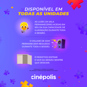 A sessão se caracteriza pela ambientação diferenciada das demais, proporcionando uma experiência agradável com volume de som reduzido, luzes apenas 50% acesas e fluxo liberado para entrada e saída a qualquer momento.