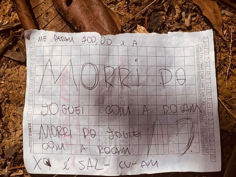 Ao lado do corpo, os policiais localizaram um bilhete que mencionava uma facção criminosa e acusava o homem de colaborar com forças de segurança. Para os agentes, o recado pode indicar que o crime tenha sido uma execução ligada ao tráfico ou a grupos organizados.