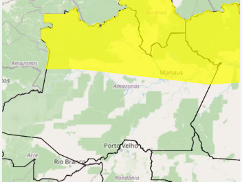O Instituto Nacional de Meteorologia (Inmet) emitiu um alerta de risco de temporais no estado do Amazonas. A previsão indica chuvas intensas, descargas elétricas e ventos fortes nas próximas horas.
