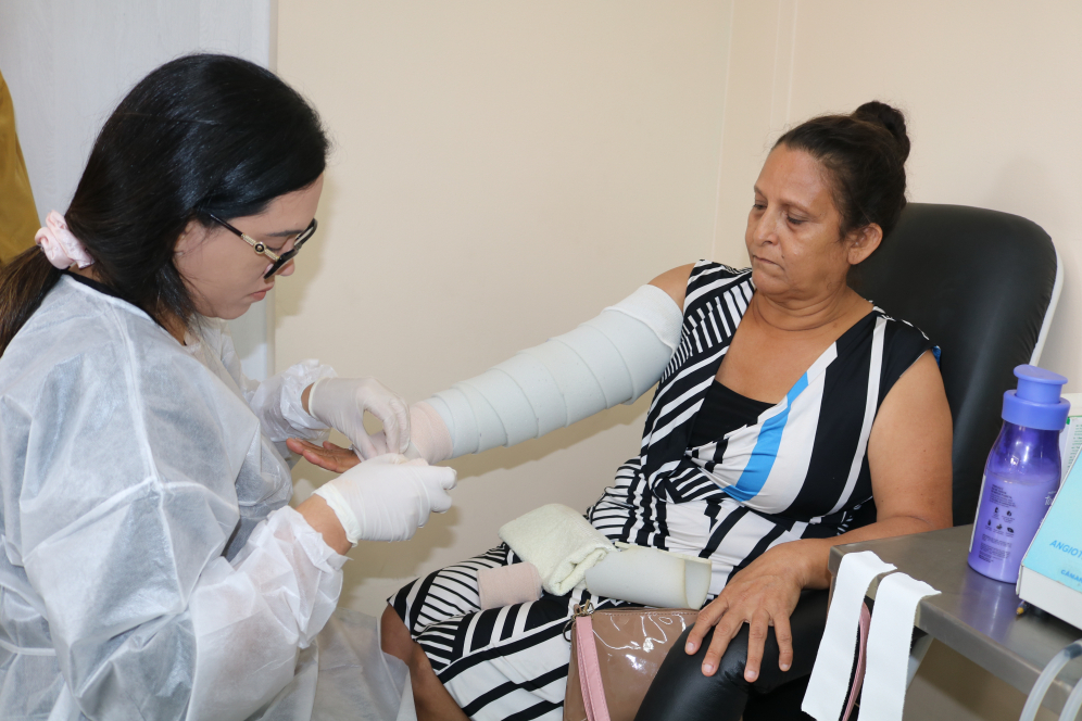“A minha perna estava muito inchada, a coxa também. Eu sentia um desconforto para andar, porque pesava muito a minha perna. Esquentava também. A fisioterapia me ajudou bastante. Ela (perna) está leve, não sinto mais aquele peso que tinha e melhorei bastante”, contou.