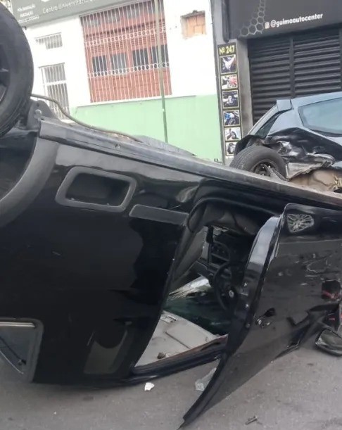 Um acidente ocorrido na madrugada desta segunda-feira (25) na rua Silva Ramos, no bairro Centro, na Zona Sul de Manaus, envolveu um motorista em alta velocidade que perdeu o controle do seu veículo, capotou e atingiu outros três carros estacionados. O incidente aconteceu por volta das 5h da manhã.
