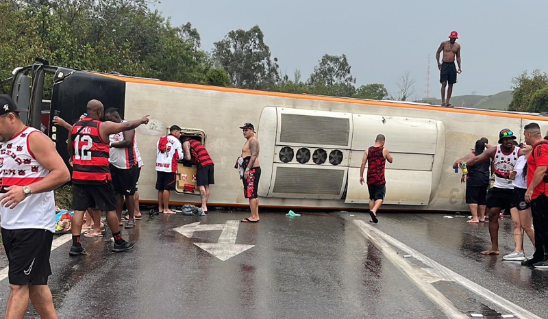Um ônibus com integrantes da torcida organizada Urubuzada, do Flamengo, tombou na tarde desta segunda-feira (27) na altura do km 281 da rodovia Presidente Dutra (BR-116), em Barra Mansa, no sul do estado do Rio de Janeiro.