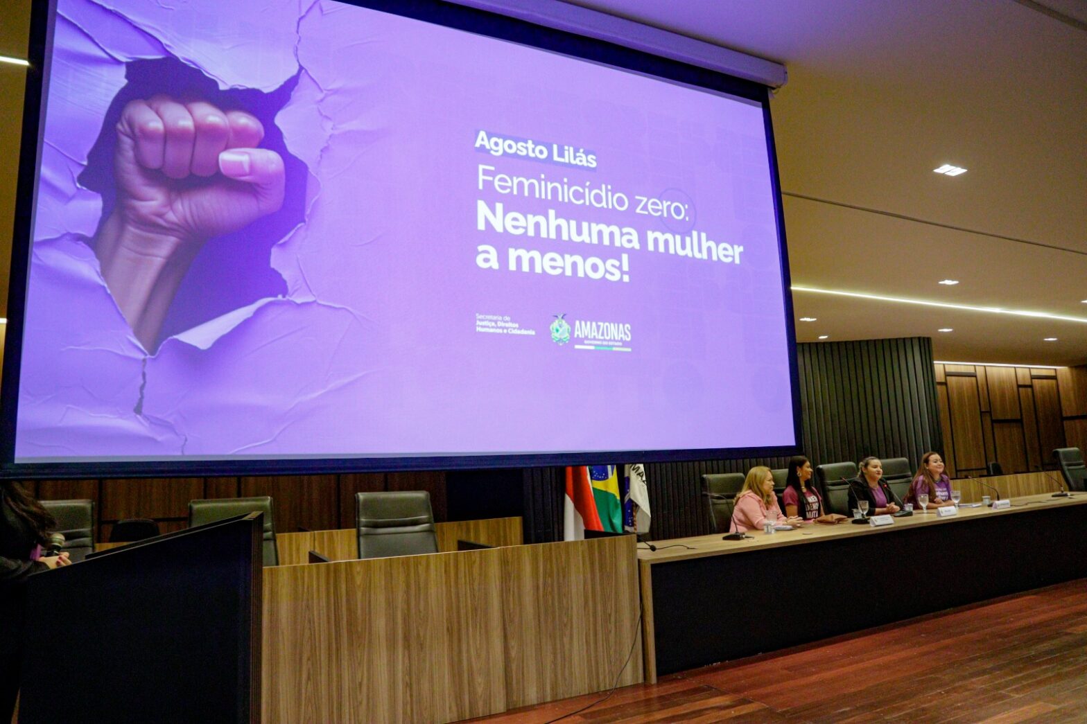 O Governo do Amazonas, por meio da Secretaria de Estado de Justiça, Direitos Humanos e Cidadania (Sejusc), lançou a campanha Agosto Lilás, nesta quarta-feira (7/8), em evento que apresentou a programação do mês e discutiu a feminilidade e violência contra as mulheres. O evento também marcou a comemoração de 18 anos da Lei Maria da Penha, que representa um dos mais importantes avanços nas políticas de proteção às mulheres no Brasil.