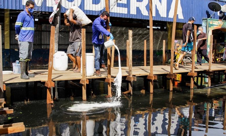 Durante o período de cheia serão realizadas 15 aplicações do produto químico, que resultará em um total de 1,5 tonelada de cal, nas áreas alagadas do Centro, mais especificamente na Manaus Moderna.