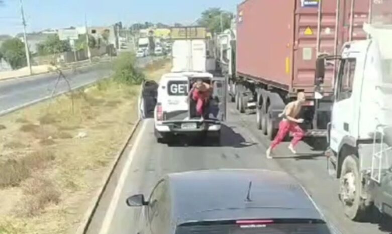 Os homens, que estavam detidos em Três Corações, no Sul de Minas, seriam transferidos para outro presídio. As imagens foram gravadas por um caminhoneiro que seguia a viatura e capturaram o momento em que os presos, em desespero, correm entre os carros enquanto os policiais tentam recapturá-los.