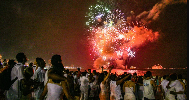 Vestir-se de branco simboliza paz e proteção espiritual. Além do branco, outras cores são usadas para atrair diferentes energias: vermelho para paixão e amarelo para riqueza. Esta prática reflete a busca por renovação e harmonia no ano que se inicia.