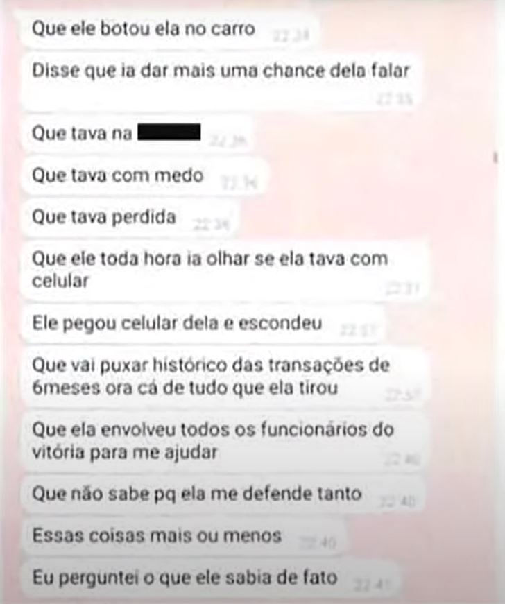 Prints de conversas entre dona do Vitória e sargento revelam detalhes do relacionamento e de ameaças