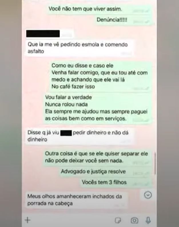 Em um dos diálogos, a mulher conta que o marido descobriu a traição por meio de mensagens no celular dela e que também já sabe do dinheiro desviado que ela deu para Lucas.
