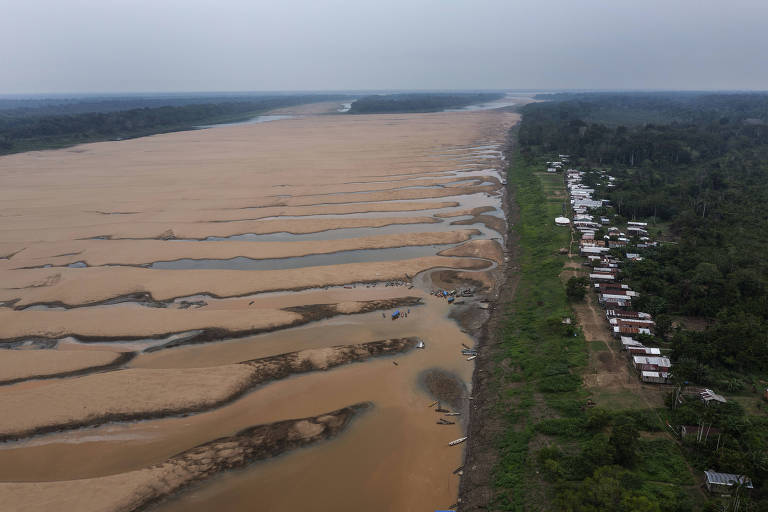Com a descida do rio, uma grande faixa de terra surgiu em frente a Tabatinga, cidade do Amazonas que faz fronteira com a Colômbia e Peru. As pessoas que precisam se deslocar, por meio fluvial, enfrentam dificuldades.