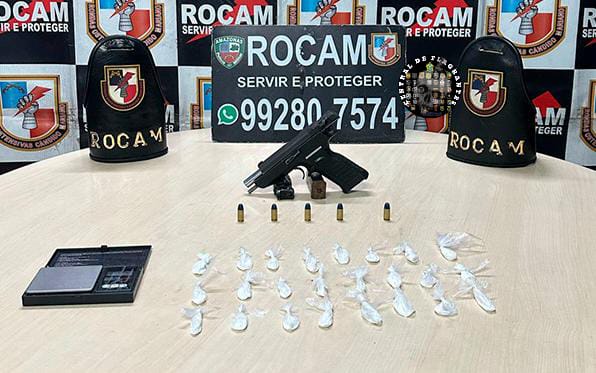 Durante uma ação policial realizada na zona sul de Manaus, a Ronda Ostensiva Cândido Mariano (ROCAM) apreendeu entorpecentes e uma arma de fogo no bairro da União. A operação ocorreu após uma denúncia anônima indicar que indivíduos estariam comercializando drogas na rua Buriti.