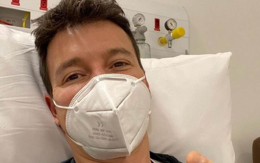 Nas redes sociais do apresentador da Record TV, ele publicou uma foto que aparece de máscara, na cama de um hospital. “Vai dar tudo certo…”, escreveu na legenda.