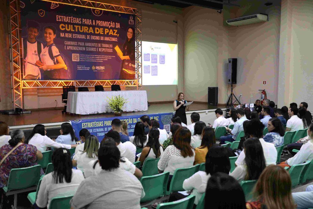 Para fortalecer as ações de promoção da cultura de paz na rede estadual de ensino, a Secretaria de Estado de Educação e Desporto Escolar lançou, nesta terça-feira (2/4), uma cartilha de combate ao assédio moral e sexual no ambiente de trabalho, no auditório do Centro de Formação Profissional Padre José Anchieta (Cepan), na sede do órgão, zona sul de Manaus. Durante o evento, também foram lançados os aplicativos “Eu Gestor” e “Pai Conectado”, com o objetivo de estreitar ainda mais a relação entre família e escola.