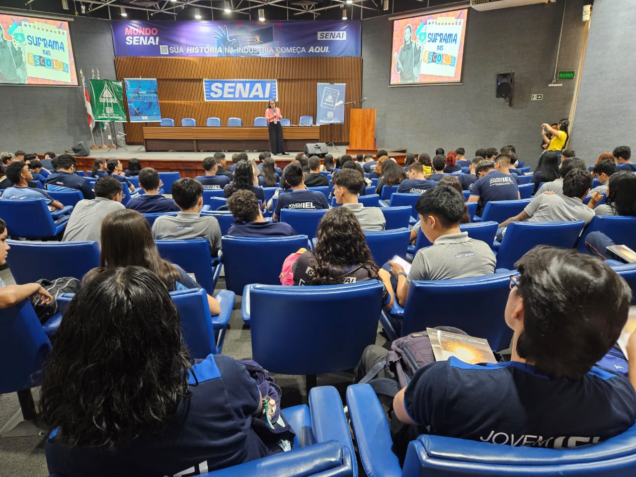 A Suframa realizou nesta quarta-feira (14), no auditório da Escola SENAI Antônio Simões, localizada no bairro Distrito Industrial, zona Sul de Manaus, duas palestras dentro da programação do “Dia do Estudante 2024”, organizado pelo Instituto Euvaldo Lodi (IEL) com apoio do Serviço Nacional de Aprendizagem Industrial (Senai).