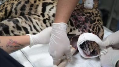 Onça-pintada é resgatada em estado crítico após ser baleada com mais de 30 tiros no Rio Negro