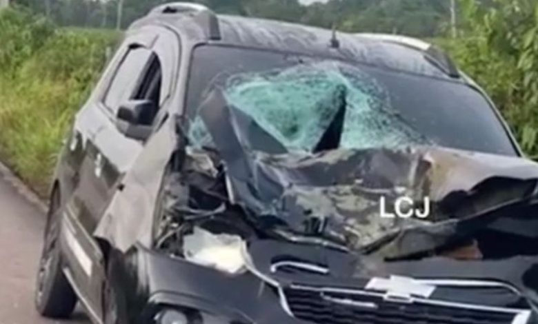 Taxista colide com búfalo solto em estrada de Novo Remanso, em Itacoatiara