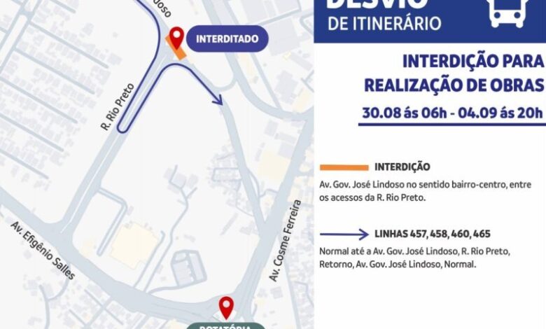 Com a interdição, os condutores que seguem pela Governador José Lindoso, em direção à Cosme Ferreira, devem entrar à direita na rua Rio Preto e fazer o retorno em seguida na via pela própria rua Rio Preto para acessar novamente a Governador José Lindoso.