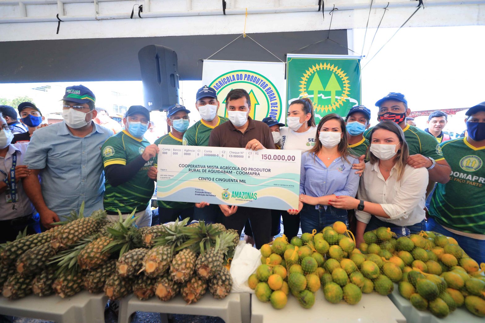 Já para a Cooperativa de Agricultores e Pescadores de Manacapuru e Região (Cooapmar) – que tem como cultivo abóbora, couve, cheiro-verde, banana in natura, banana-pacovã, macaxeira in natura e outros –, o cheque pagamento foi de R$ 150 mil para a aquisição de materiais como seladoras rotativas, refrigerador vertical, expositor ilha, ensacadeira, triciclos e equipamentos permanentes para escritório. A Cooapmar atende 39 agricultores.